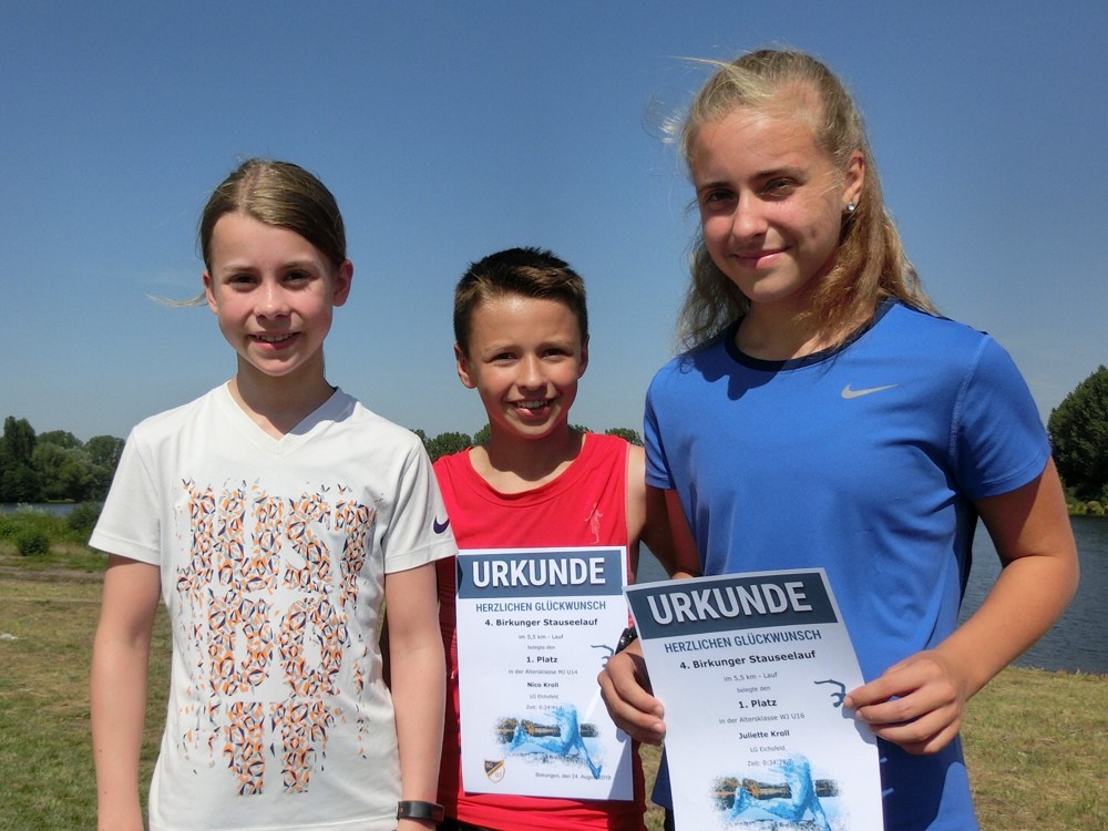 Auf der anspruchsvollen 5,5 Kilometer langen Naturstrecke um den Birkunger Stausee konnten alle TVG Teilnehmer in ihrer Altersklasse den Ersten Platz einfahren. Jüngste Teilnehmerin Valeria, in der wJ U14 (w12) kam sie als zweitschnellste "Frau" ins Ziel, mit deutlichem Abstand die U14 gewonnen.