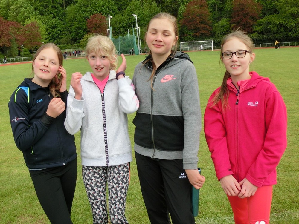 Die w Ju14 (Angelina, Milly, Tabea, Amelie und Jael) wie immer stark als Mannschaft, Verbesserung ihrer Jahresbestleistung im Vierkampf (75m Weit- , Hochsprung und Ballwurf) von Platz 5 in der Landesbestenliste mit 7.835 Punkten auf Rang DREI hochgearbeitet. Dazu im Dreikampf, ohne Hochsprungwertung, ebenfalls beste Mannschaft im Kreis, und mit dem Ergebnis aus Ebergötzen Rang VIER im Land.