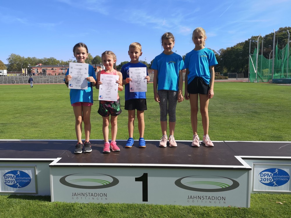 Kurzfristig ins Team Mara Kellner, mit 5 Jahren jüngste Teilnehmerin vom TVG, völlig unvorbereitet war sie die schnellste in ihrer Altersklasse, ihre Schwester Emily (w/) landete im Mehrkampf auf Platz 6, besser Luisa Hahn, sie schaffte in der AK w7 SILBER, leider waren keine Gieboldehäuser Mädchen in den AK w8/9 und 11 vertreten, bei den 1ojährigen Damen überzeugten Hannah Heine und Carlotta Rudolph im Sprint, beide zeitgleich als Schnellste, super auch der Weitsprung, nur beim Ballwerfen, da ist Luft nach oben. Im Mehrkampf, Hannah auf ZWEI, Carlotta auf VIER, Charlotta Hildebrand auf SECHS, alle DREI in der Siegermannschaft der wKU12.