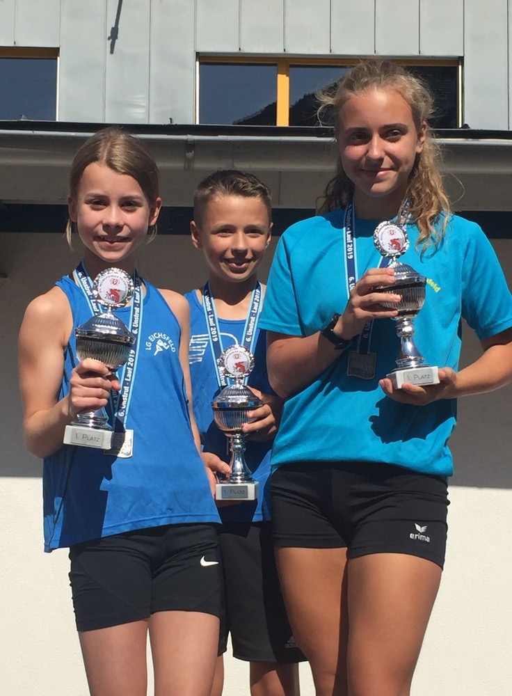 Luisa, w15, gewann überlegen den Hochsprung mit neuer persönlicher Bestleistung, bei übersprungenen 1,55m hat sie den Wettbewerb beendet; 4,60m im Weitsprung reichten ebenfalls für GOLD.