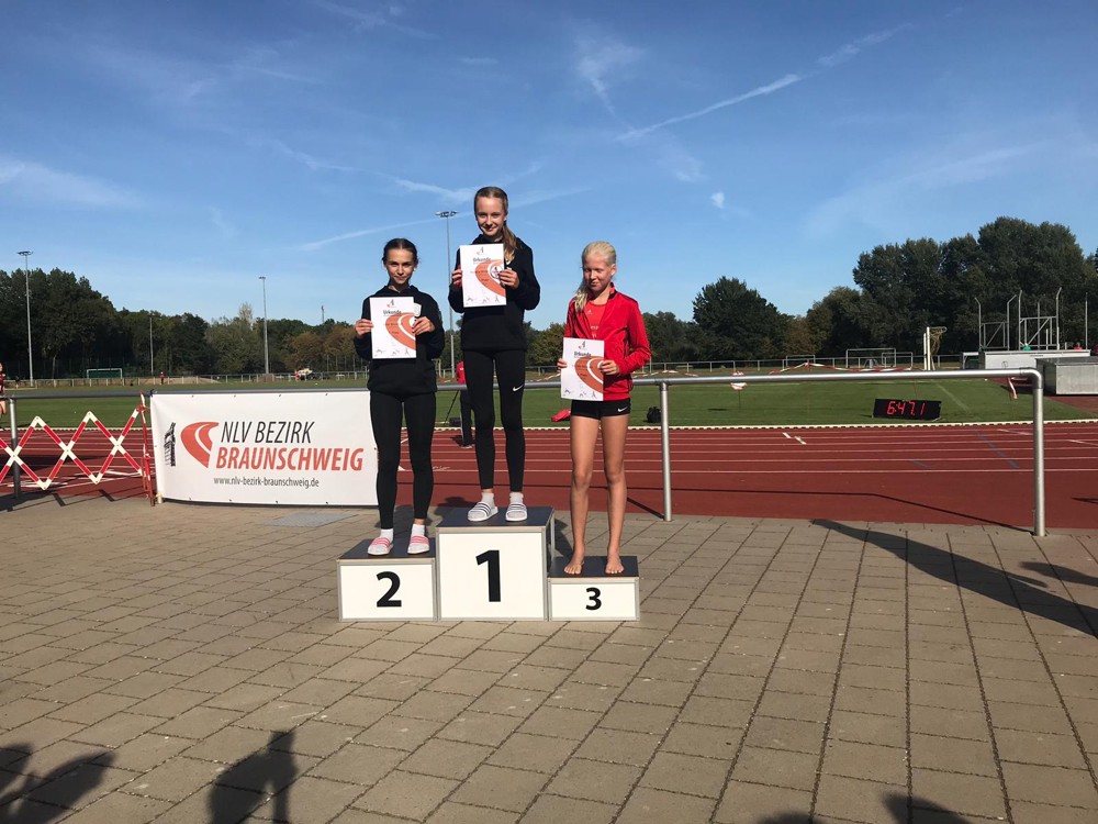 Am Samstag 14. 9. 2019 fanden die Bezirksmeisterschaften 2.000m und 3.000m in Braunschweig – Rüningen statt, im 2.000m Lauf belegten Jael in der wJ12 ebenso wie Leni in der wJ14 den Silberrang, beide vom TV Germania Gieboldehausen, Helena vom TV Jahn Duderstadt wurde in der Altersklasse Bezirksmeisterin. Linus (TVG) erlief sich über 3.000 den Bronzeplatz.
